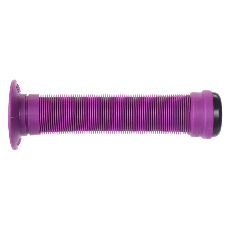 ODI Longneck ST Grips - Purple Flange. The Longneck ST features the classic mushroom rib pattern thats open ended to accommodate end plugs.Sold in pairs and include push in plugs